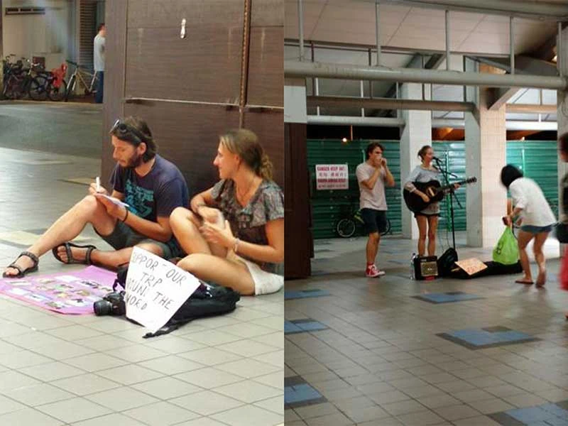 Ở Singapore, cảnh tượng ăn xin của khách du lịch phương Tây trên đường phố. Ảnh: TWITTER