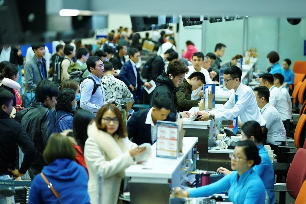 Hành khách đi máy bay cần chủ động check in online trước khi đến sân bay để tránh ùn tắc. Ảnh: N.LONG