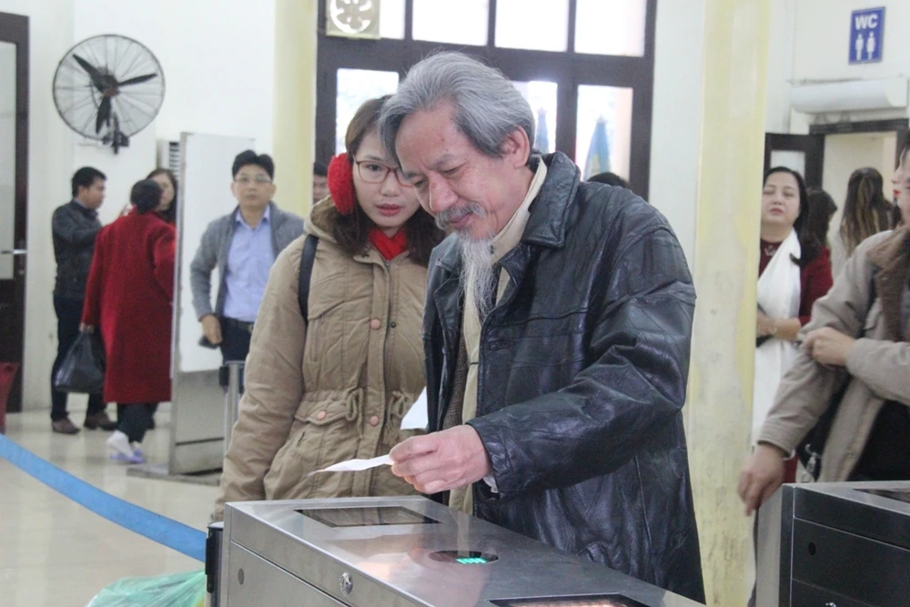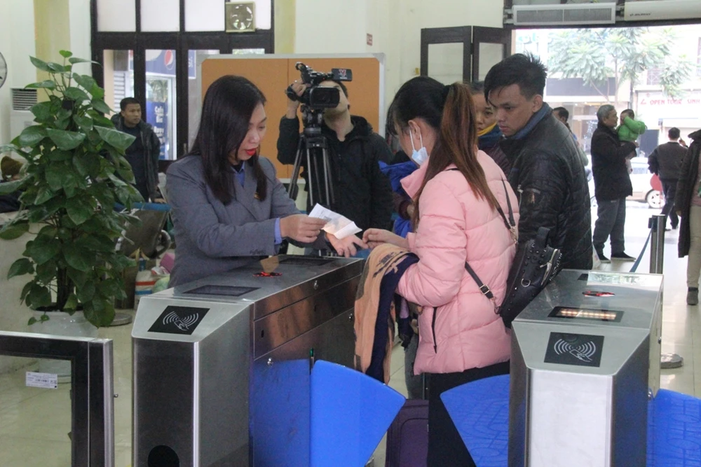 Sáng 15-12, ga Hà Nội chính thức đưa vào sử dụng hệ thống kiểm soát vé tự động. Theo đó, thay vì phải đưa vé cho nhân viên soát vé kiểm tra như trước đây, hành khách chỉ cần đưa vé lên trụ kiểm soát để quét mã vạch rồi lên tàu.