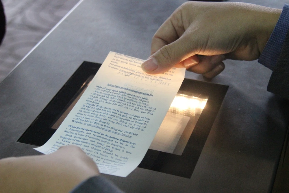 Sau khi nhận tiền, nhân viên sẽ xuất vé cho khách để mang đến cổng kiểm soát vé tự động.