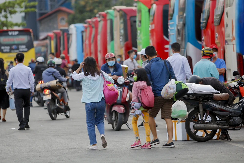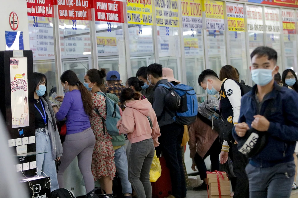 Ghi nhận chiều ngày 31- 12, khá đông người dân tập trung tại Bến xe miền Đông (quận Bình Thạnh, TP.HCM) để mua vé, xuất bến về quê. Càng về cuối giờ chiều, lượng khách bắt đầu đổ về Bến xe Miền Đông tăng mạnh.