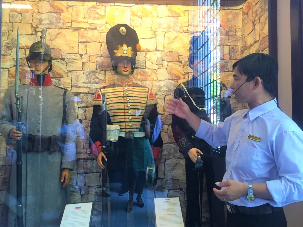 Hướng dẫn viên thuyết minh cho du khách tại bảo tàng vũ khí cổ Robert Taylor tỉnh Bà Rịa Vũng Tàu.