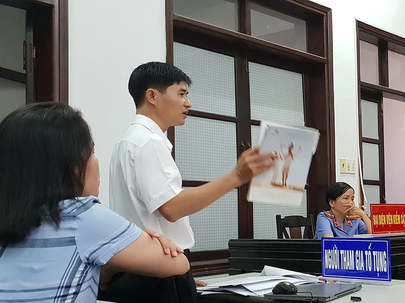 Luật sư của bà Nguyễn Thị Long Tuyền (đứng) đang trình bày tại tòa. Ảnh: T.LỘC