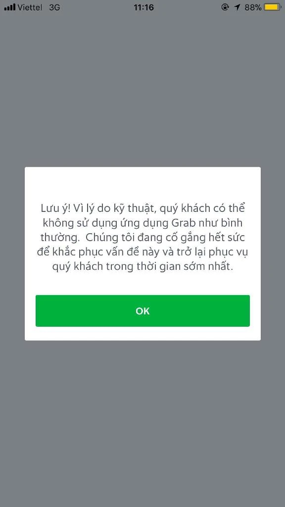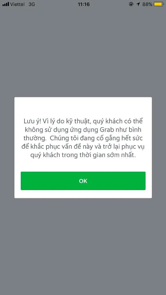 Khách hàng phàn nàn về ứng dụng Grab bị lỗi.
