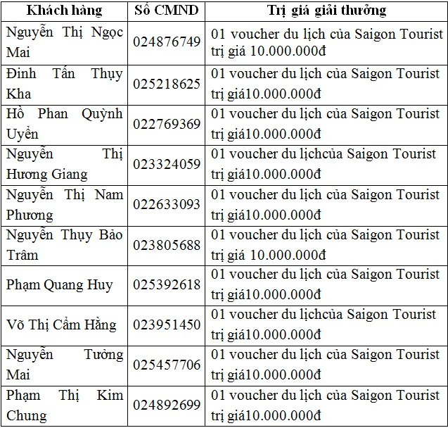 Xin chúc mừng 10 giải khuyến khích trị giá 10.000.000đ