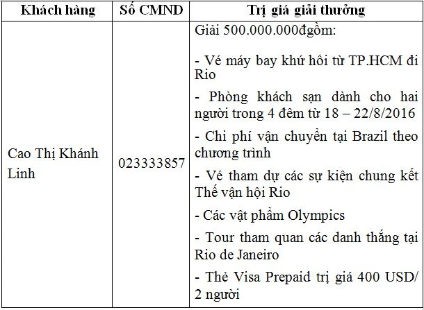 Xin chúc mừng giải đặc biệt-Chuyến đi Brazil xem thế vận hội Olympics Rio 2016 dành cho 2 người trị giá 500.000.000đ