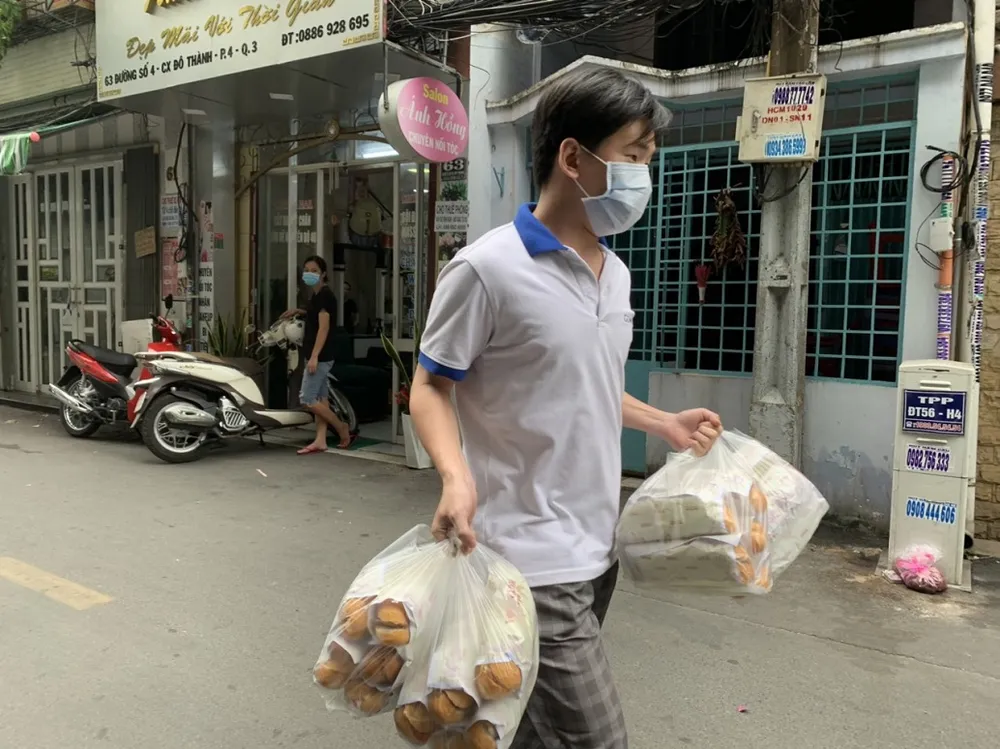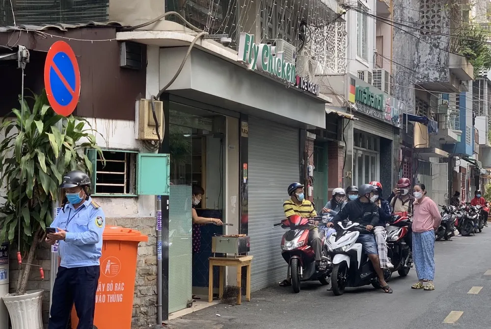 Chị Uyên mua phiếu sau đó quay lại lén đưa vào tiệm, nhân viên bên trong tiệm thông báo sẽ làm và đem giao ra ngoài. Khi được hỏi có sợ dịch bệnh hay không, chị Uyên nói thêm: "Giờ sống chung với dịch rồi, F0 có ở khắp mọi nơi, người ta mở bán thì mình đến mua về nhà ăn thôi chứ cũng không sợ gì nhiều".