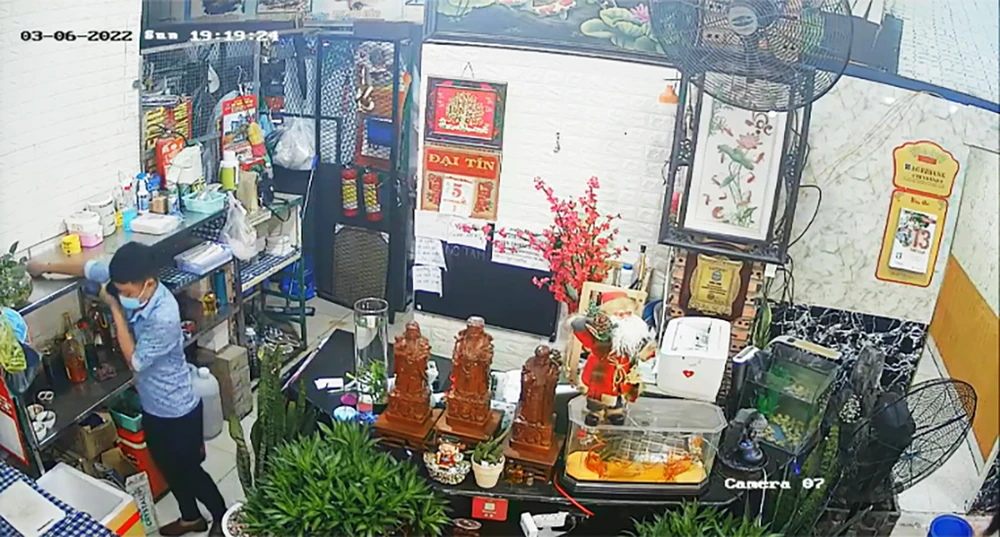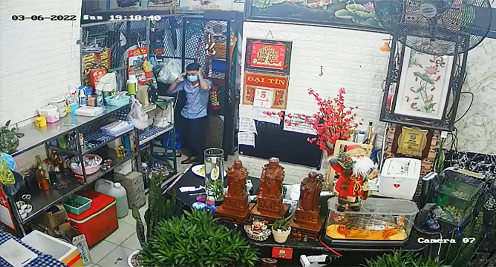 Lấy được điện thoại cho vào túi, nam thanh niên nhanh chóng ra dắt xe chờ sẵn, người đi cùng cũng nhanh chóng chạy ra, cùng tẩu thoát.