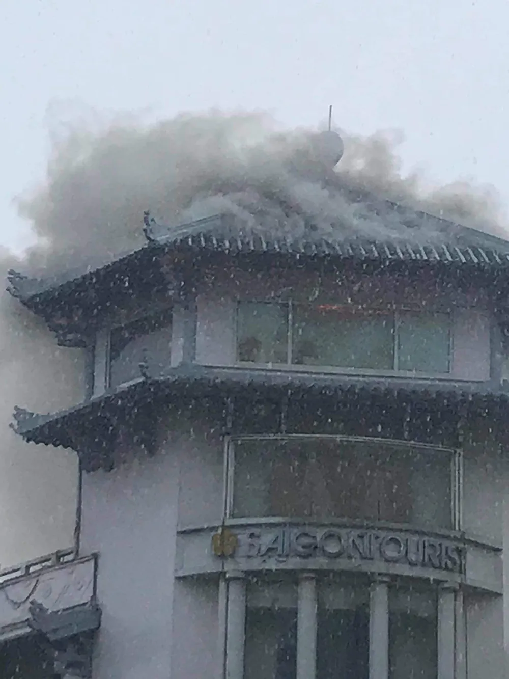 Lửa lớn nhanh chóng bao trùm đỉnh tháp khiến những người xung quanh hốt hoảng, hô hoán, kêu cứu. Các nhân viên của khách sạn cố gắng tiếp cận, dùng bình chữa cháy dập lửa nhưng bất thành.