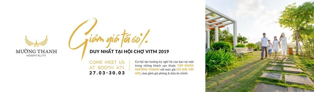 Tham dự VITM 2019, tập đoàn khách sạn Mường Thanh mang tới gian hàng giới thiệu về dịch vụ của mình với những ưu đãi hấp dẫn lên tới 60%, áp dụng duy nhất tại hội chợ.