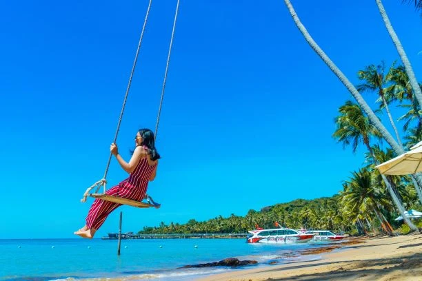 Du khách tham gia các hoạt động giải trí ở đảo Hòn Thơm, Phú Quốc.