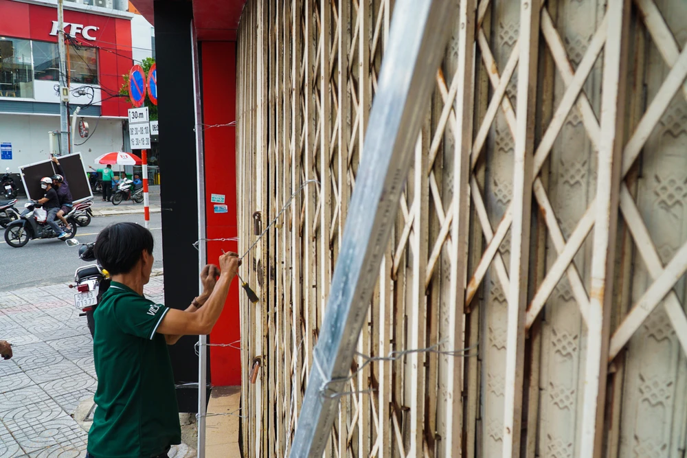 Đến 16 giờ 30, các cửa hàng, khách sạn trên đường: Lê Duẩn, Bạch Đằng,…cửa đóng then cài rất cẩn thận. Các chủ cửa hàng tiến hành chằng chống bằng những cọc gỗ, thanh sắt. Nhiều khách sạn trên đường Phạm Văn Đồng (quận Sơn Trà) thuê cả container để chắn gió, gia cố cửa ra vào bằng các đóng ván gỗ, dùng vật dụng chèn trước cửa nhà để tạo độ kiên cố trước gió bão.