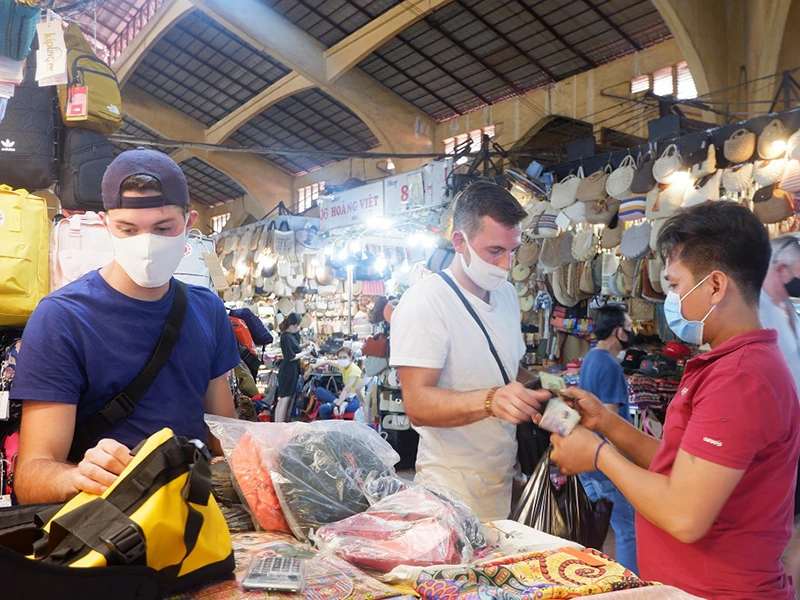 Khi đến nơi công cộng mua sắm, du khách không quên mang khẩu trang. Ảnh: TRÚC PHƯƠNG