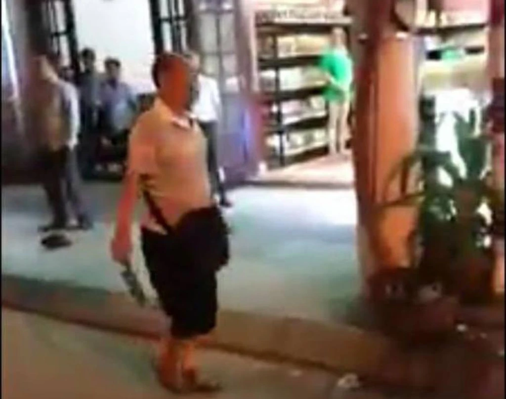 Người đàn ông Trung Quốc cầm dao hăm dọa. (Ảnh cắt từ clip)