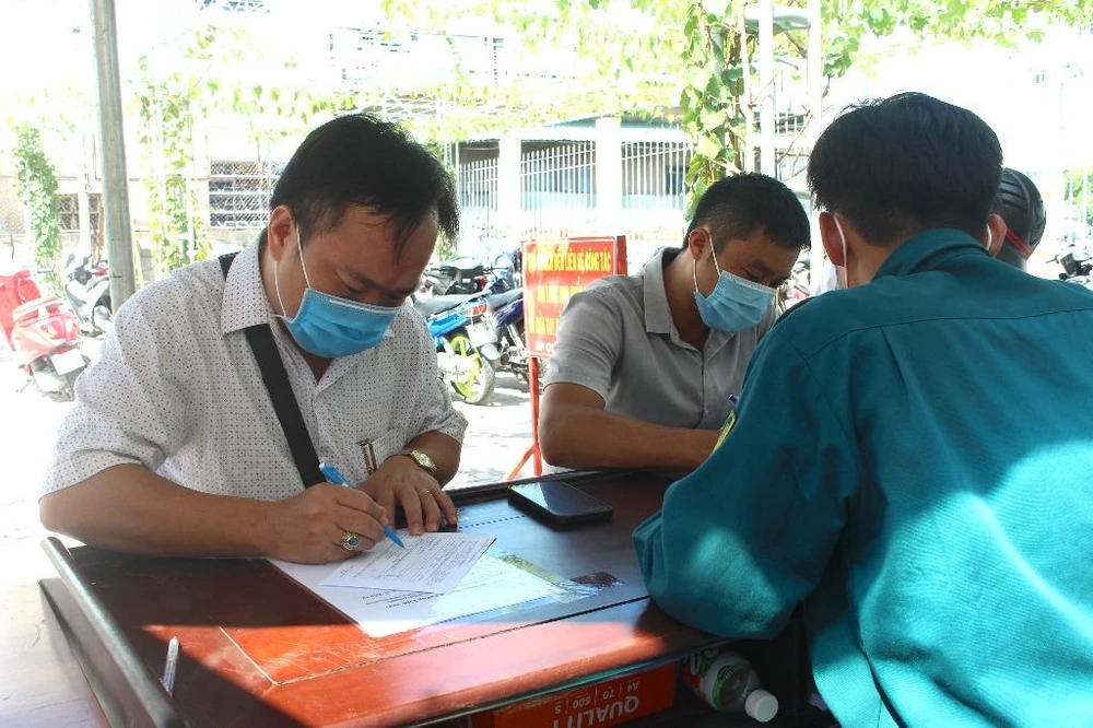 Tại điểm tiếp nhận và trả kết quả hồ sơ tại khu vực III, TP Thủ Đức, từ nhiều ngày nay đã áp dụng việc KBYT bằng cách quét mã QR code hoặc khai báo trực tiếp (dành cho người không sử dụng điện thoại thông minh). Cùng đó là việc thực hiện nghiêm quy định 5K của Bộ Y tế, đảm bảo giãn cách giữa những người dân đến làm thủ tục.