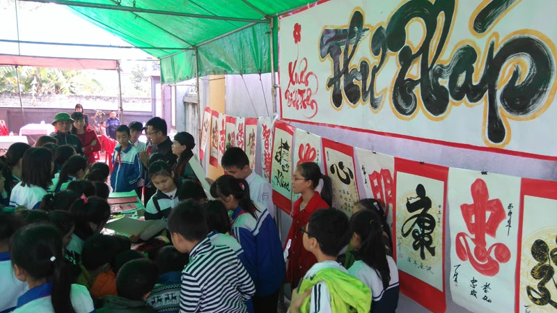 Hàng ngàn người dân Hải Phòng đã đưa con cái về lễ hội để được xin chữ thư pháp tại nơi linh thiêng này.