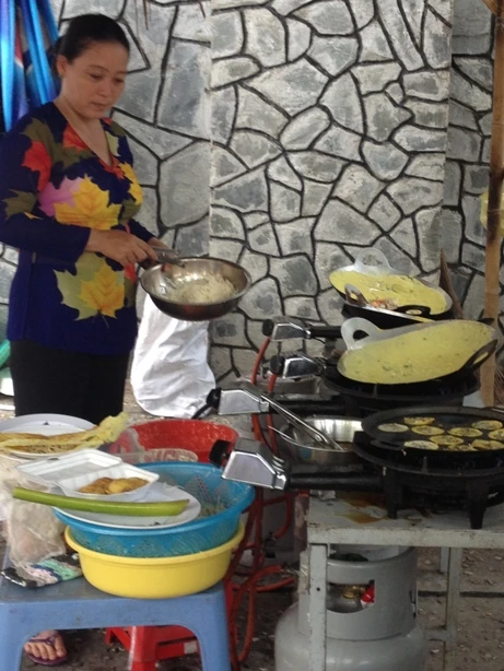 Trình diễn đổ bánh xèo.