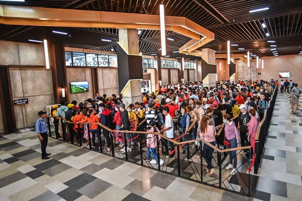 Lượng khách đông đúc nối dài từ cổng KDL tới khu vực Ga Bà Đen - Nhà ga cáp treo lớn nhất thế giới do Tổ chức Kỷ lục thế giới Guinness công bố. Ai cũng háo hức được trải nghiệm những điều mới mẻ tại một điểm đến vốn đã rất quen thuộc mỗi dịp tết đến xuân về của người dân phía Nam.