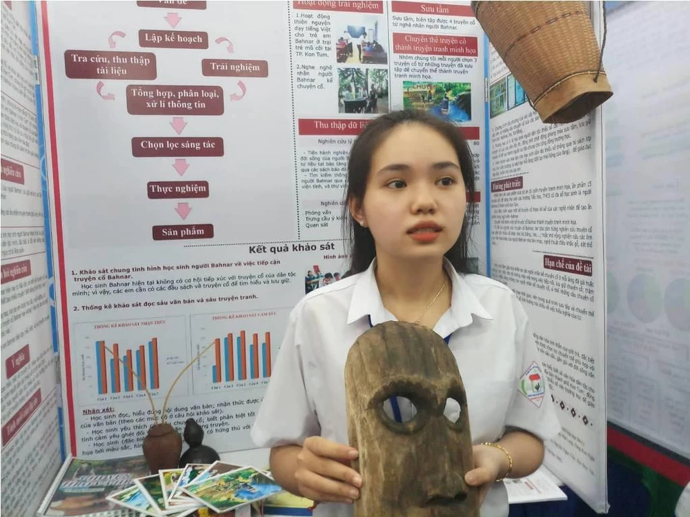 Học sinh tỉnh Kon Tum giới thiệu về dự án của mình đến các khách tham quan. Ảnh: NGUYỄN QUYÊN