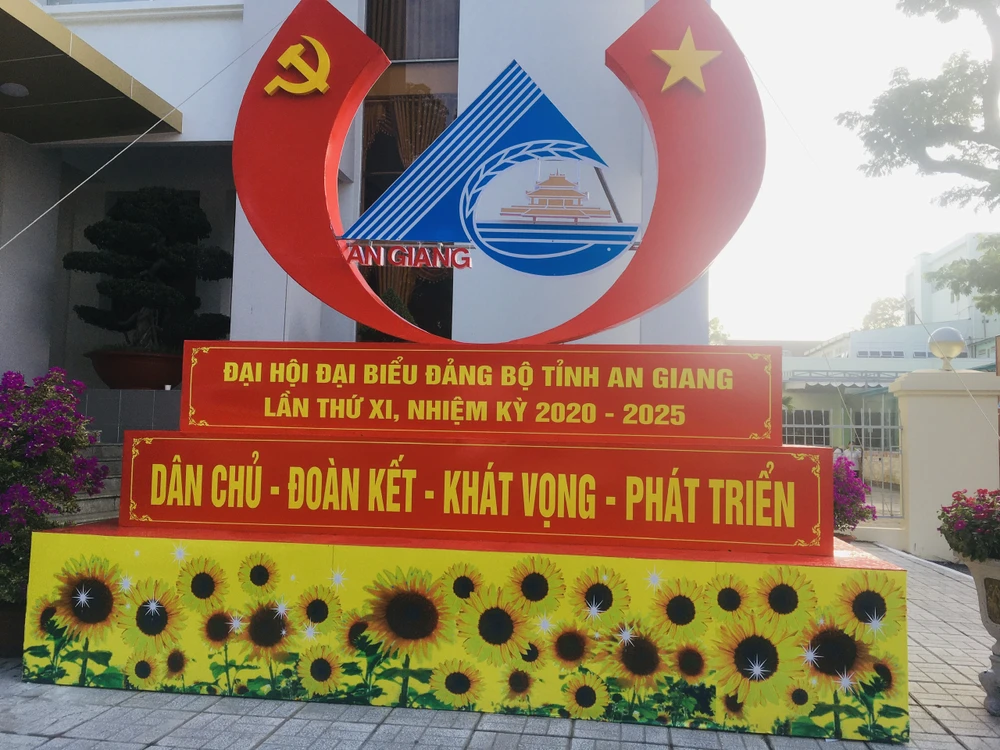 Phương châm của Đại hội Đại biểu Đảng bộ tỉnh An Giang lần XI nhiệm kỳ 2020-2025 là “Dân chủ - Đoàn kết - Khát vọng - Phát triển. Ảnh: HD