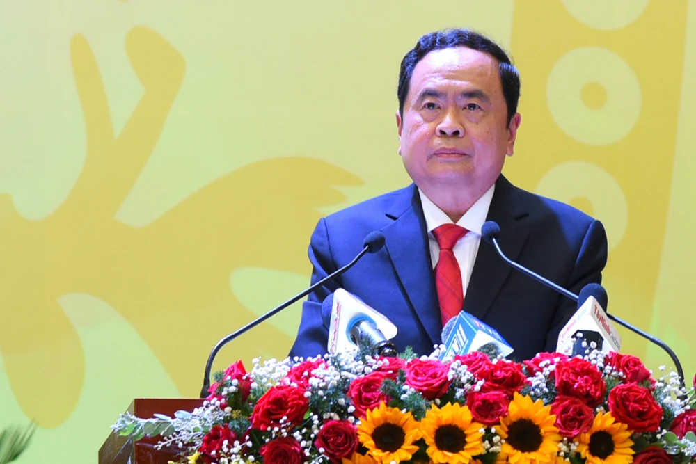 Ông Trần Thanh Mẫn, Bí thư Trung ương đảng, Chủ tịch Uỷ ban Trung ương Mặt trận Tổ quốc phát biểu chỉ đạo Đại hội. Ảnh: BTC