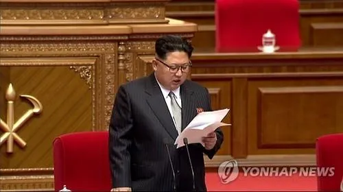 Ông Kim Jong-un đọc diễn văn khai mạc đại hội lần thứ 7 của đảng Lao động Triều Tiên. Ảnh: KCNA/Yonhap