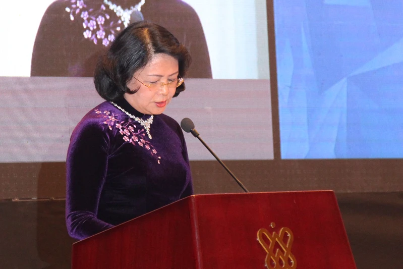 Phó Chủ tịch nước Đặng Thị Ngọc Thịnh phát biểu chào mừng Đối thoại công - tư về Phụ nữ và Kinh tế. Ảnh: NGUYỄN DO