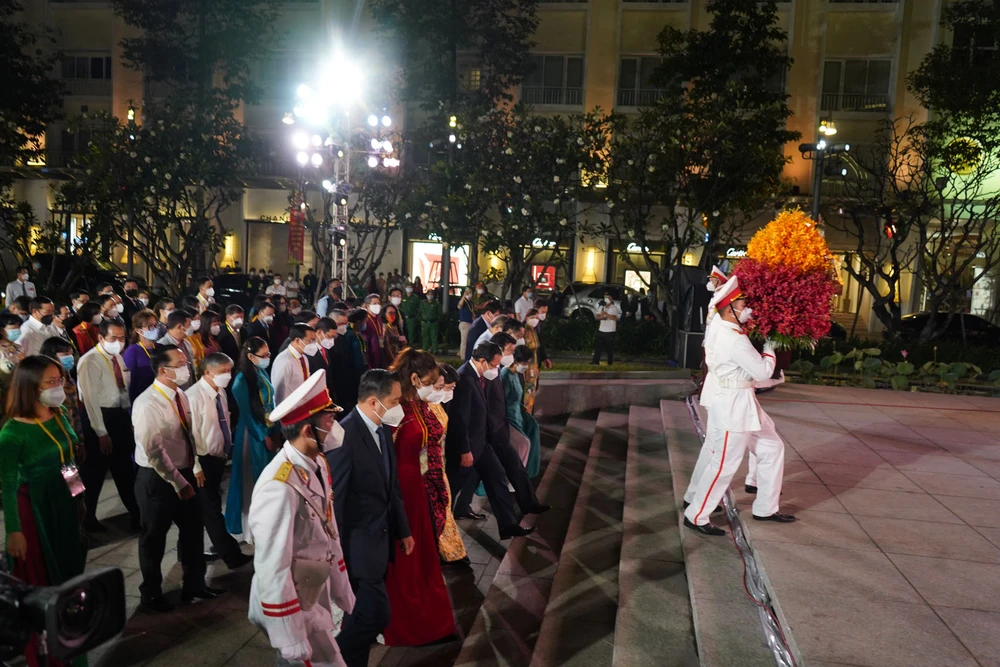 Lãnh đạo TP.HCM dâng hương tượng đài Chủ tịch Hồ Chí Minh. Ảnh: MINH TÂM