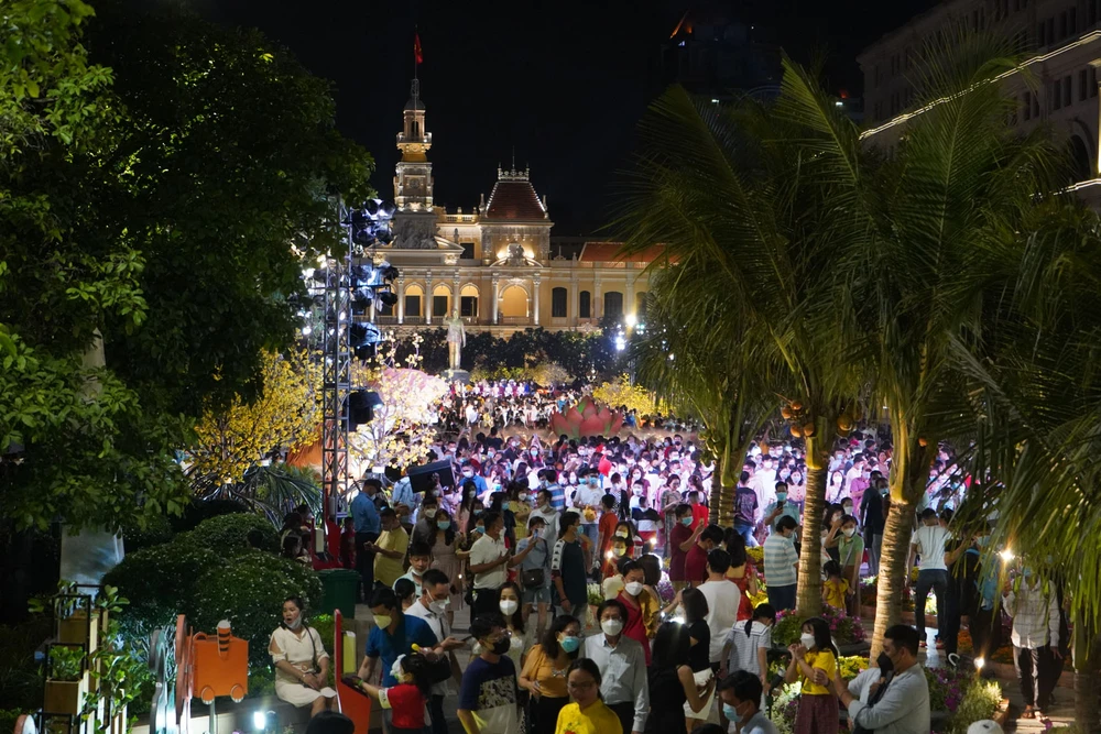 Dự lễ khai mạc Đường hoa Nguyễn Huệ xuân Nhâm Dần 2022 có ông Nguyễn Văn Nên, Bí thư Thành ủy TP.HCM; ông Trương Tấn Sang, nguyên Chủ tịch nước; ông Nguyễn Thiện Nhân, nguyên Bí thư Thành ủy TP.HCM, ông Nguyễn Trọng Nghĩa, Bí thư T.Ư Đảng - Trưởng Ban Tuyên giáo T.Ư; bà Trương Mỹ Hoa, nguyên Phó Chủ tịch nước, cùng đại diện Lãnh đạo các Bộ, ban, Sở ngành TP, các vị nguyên là lãnh đạo T.Ư, TP.HCM qua các thời kỳ, đại diện 9 Lãnh sự quán ở TP.HCM, các doanh nghiệp... Ảnh: MINH TÂM