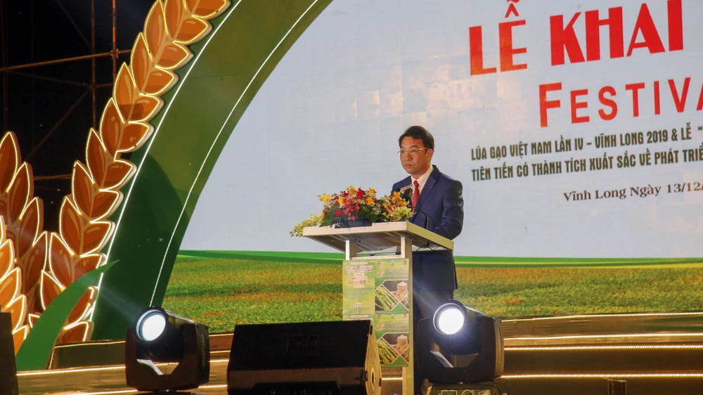 Ông Lữ Quang Ngời, Phó Chủ tịch phụ trách UBND tỉnh Vĩnh Long, phát biểu tại lễ khai mạc Festival Lúa gạo Việt Nam lần IV năm 2019.