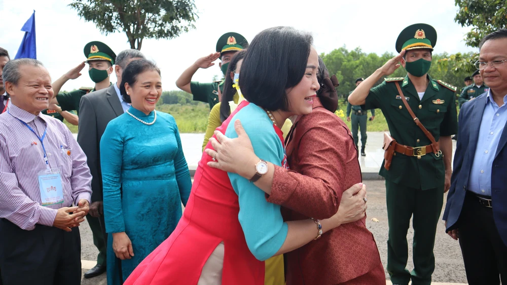 Ngày 5-11, Đoàn đại biểu cấp cao Việt Nam đón tiếp đoàn Đại biểu cấp cao Campuchia tại Cửa khẩu quốc tế Hoa Lư (huyện Lộc Ninh, tỉnh Bình Phước). Ảnh: DH |