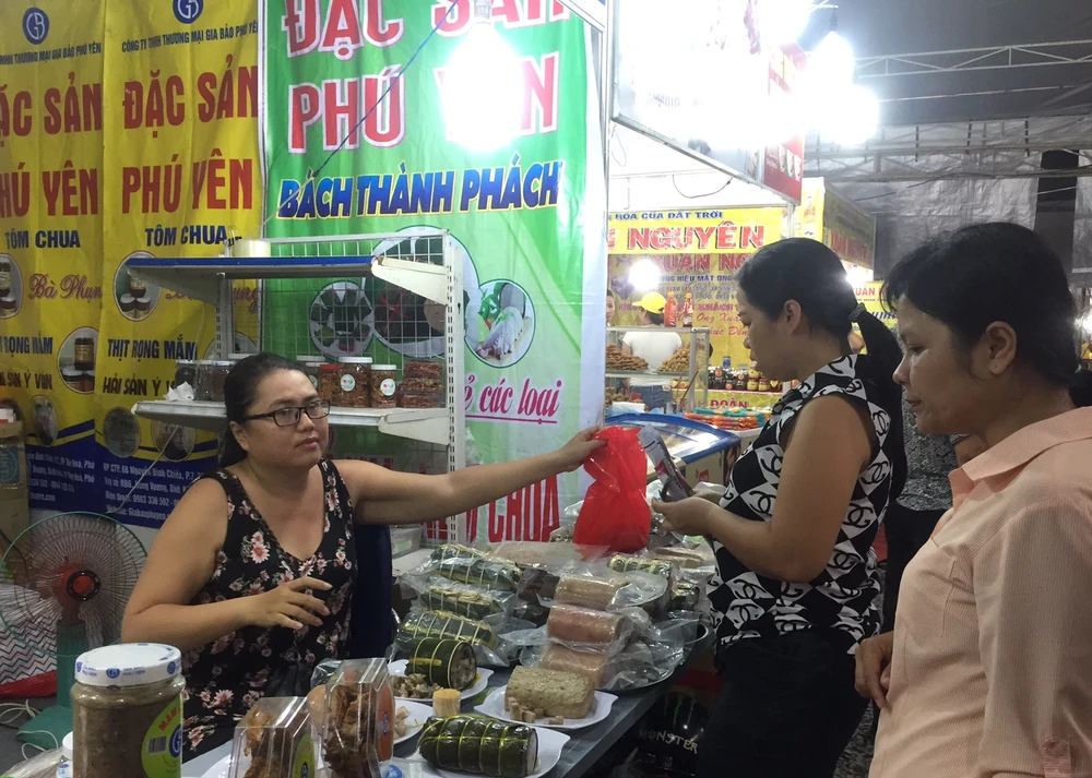 Tham gia hội chợ có hơn 120 gian hàng đa dạng các mặt hàng nông sản, ẩm thực, thời trang, trang sức, mỹ phẩm, quà lưu niệm, thủ công mỹ nghệ…Tại đêm khai mạc, một số gian hàng túi xách giảm giá, gian hàng đặc sản Phú Yên như chả lụa da, cá bò da khô miếng, cá ngừ đại dương một nắng hay hạt Sachi vùng Tây Nguyên là những mặt hàng được khách tham quan quan tâm.