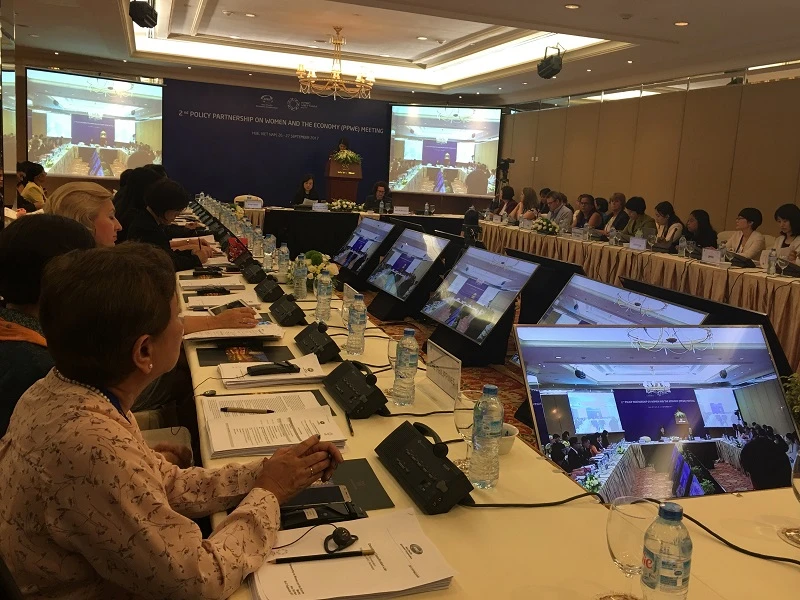 Hội nghị có sự tham gia của các đại biểu Nhóm đối tác về chính sách APEC về phụ nữ và kinh tế; Thứ trưởng Bộ LĐ-TB&XH Đào Hồng Lan...