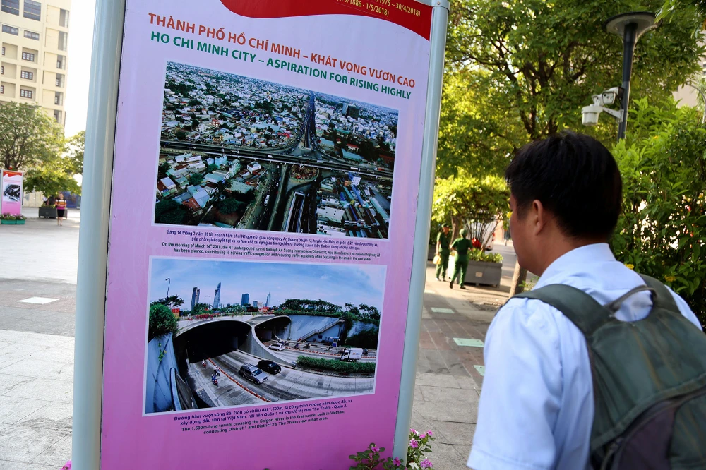 Tại đường Nguyễn Huệ, Ban tổ chức giới thiệu 84 ảnh chủ đề “Thành phố Hồ Chí Minh - Khát vọng vươn cao".