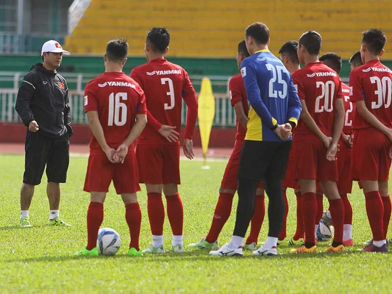 HLV Hữu Thắng ngán ngẩm: “Đội tuyển cứ vào TP.HCM là ăn đong ở đếm việc sân tập từng bữa mà chất lượng sân thì quá kém. Đã vậy vào những ngày này, trời Sài Gòn lại hay mưa khiến tình hình càng thêm căng...”.