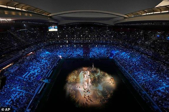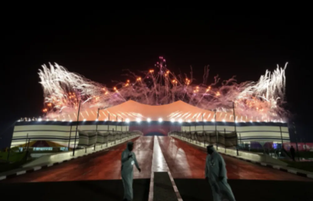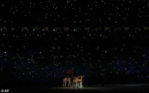 Cuối cùng, hoàng thân Amir Sheikh Tamin al-Thani phát biểu trước đám đông khi một chiếc áo đấu khổng lồ, linh vật World Cup và một biểu tượng khổng lồ lấp đầy sân khấu kết thúc lễ khai mạc World Cup 2022.