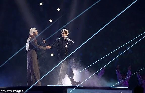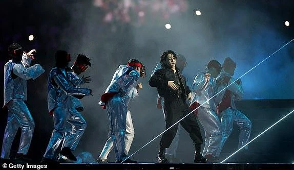 Bữa tiệc tiếp tục khi ca sĩ Hàn Quốc Jung Kook bước lên giữa sân khấu trình diễn, xung quanh anh là các vũ công.