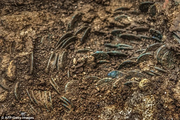 Một kho báu hơn 4.000 tiền xu đồng và bạc có từ thời cổ đại Rome đã được phát hiện bởi một người nông dân trồng rau và cây ăn quả ngay dưới gốc cây anh đào