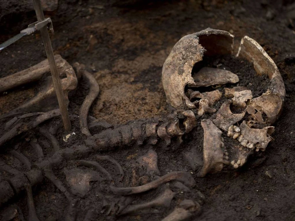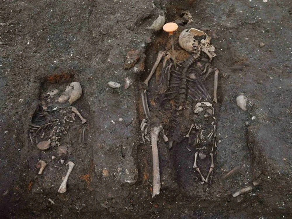 Bộ xương trong hình là của một bà mẹ và đứa con (Ảnh chụp từ The Independent)