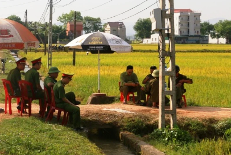 Khi thực hiện khai quật tử thi, các lối đi vào nghĩa trang có công an chốt chặn bảo vệ nghiêm ngặt.