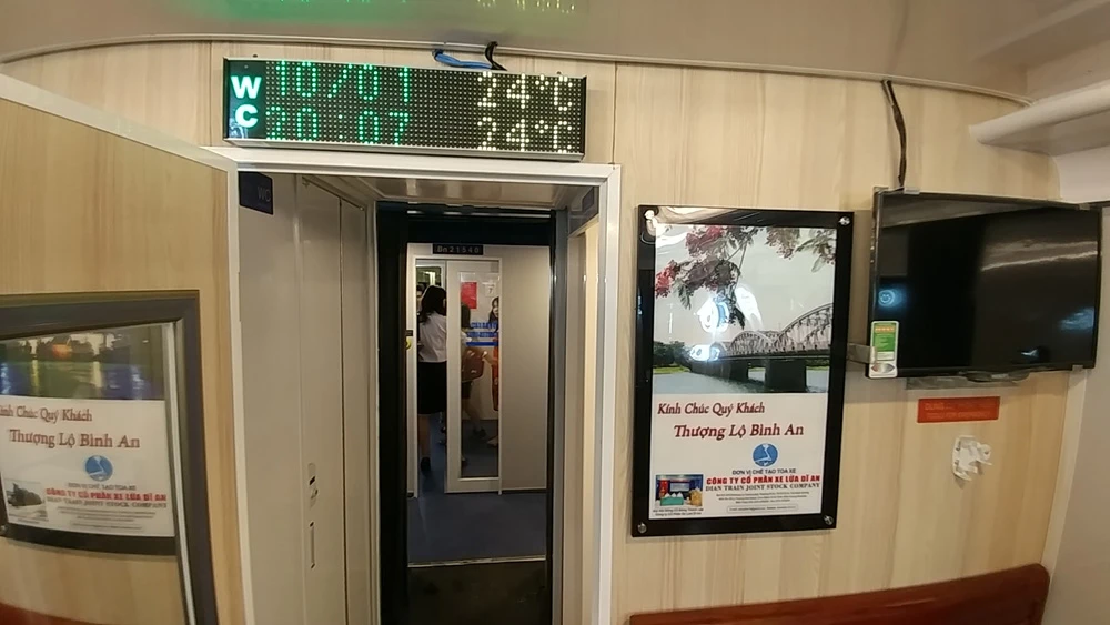 Ngoài trang bị tivi, bảng điện tử thông báo nhiệt độ, ga kế tiếp, hành khách có thể nhấn nút gọi nhân viên.
