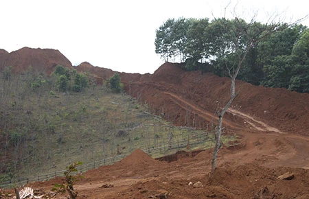 Công ty mở đường ngược núi khai thác quặng dưới danh nghĩa khảo sát, thăm dò. Ảnh: Đ.TRUNG