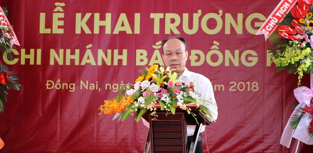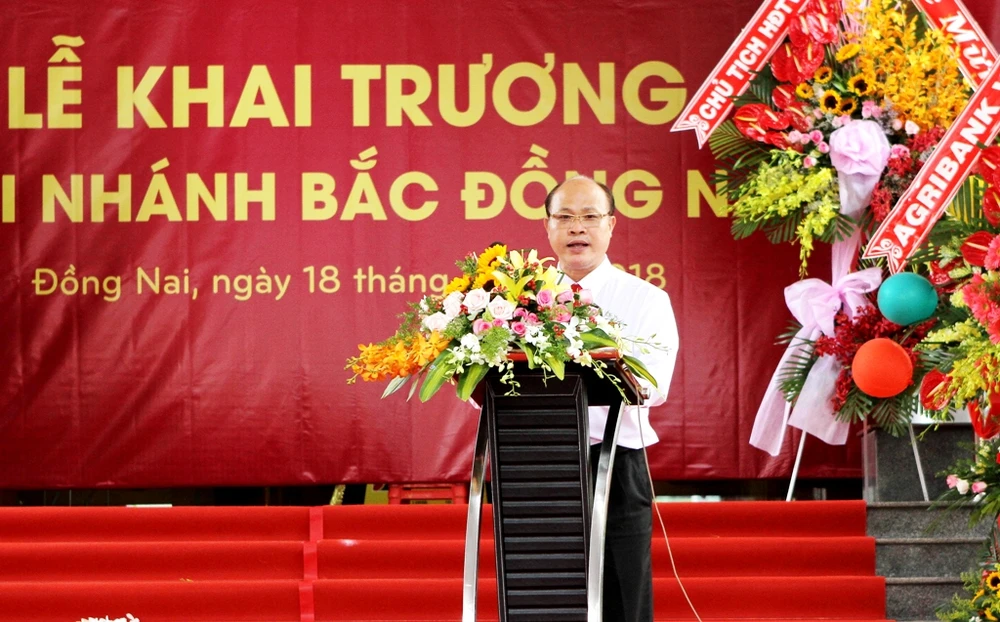 Ông Nguyễn Minh Trí, thành viên Hội đồng thành viên Agribank, phát biểu tại lễ khai trương Chi nhánh Bắc Đồng Nai.