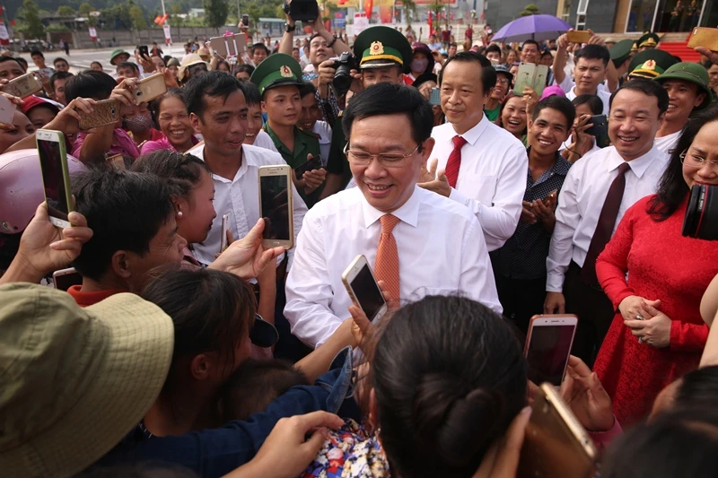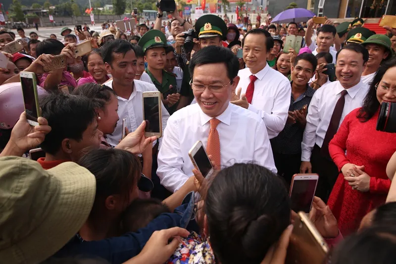 Phó Thủ tướng Vương Đình Huệ trò chuyện với người dân tại cửa khẩu Chi Ma. Ảnh: TC