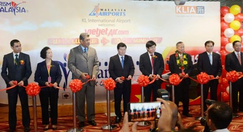 Lãnh đạo hai nước Việt Nam và Malaysia cắt băng khai trương đường bay TP.HCM - Kuala Lumpur.