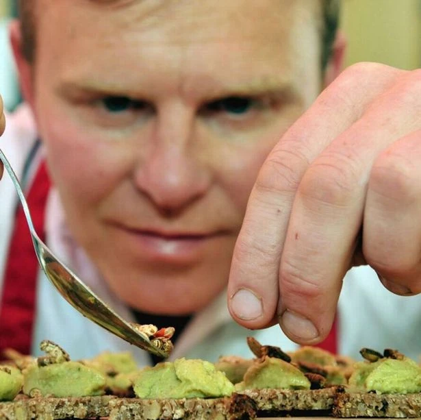 Đầu bếp Andy Holcroft đang chăm chút cho một món ăn côn trùng. (Ảnh: Mirror)
