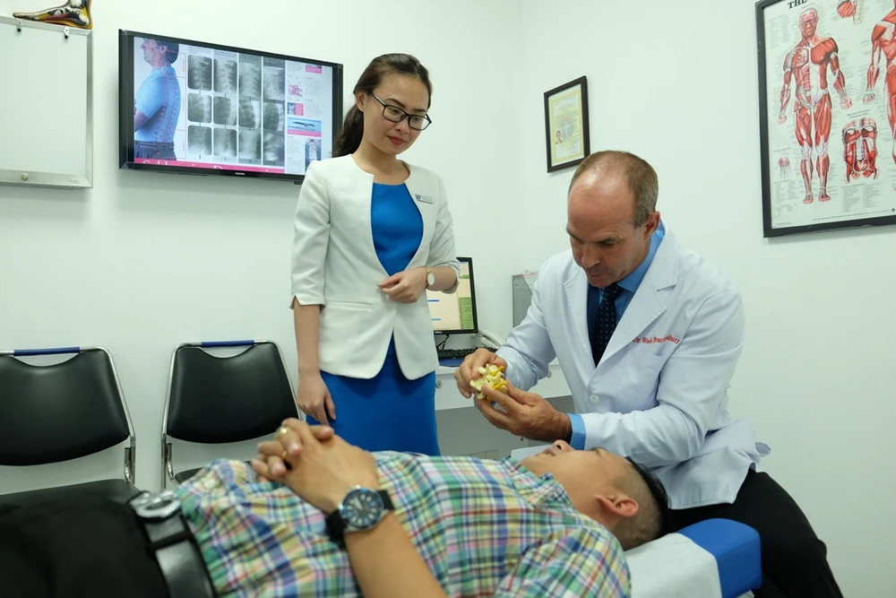 BS Wade Brackenbury, Tổng Giám đốc Phòng khám ACC, đang khám và tư vấn cho bệnh nhân.