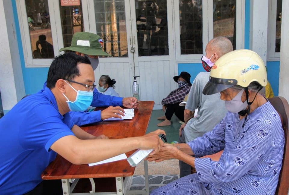 Để đảm bảo đúng quy định giãn cách xã hội, đơn vị tổ chức đã phối hợp với tỉnh Đoàn và Đoàn thanh niên các phường tại TP Phan Rang-Tháp Chàm hỗ trợ người dân xếp hàng.