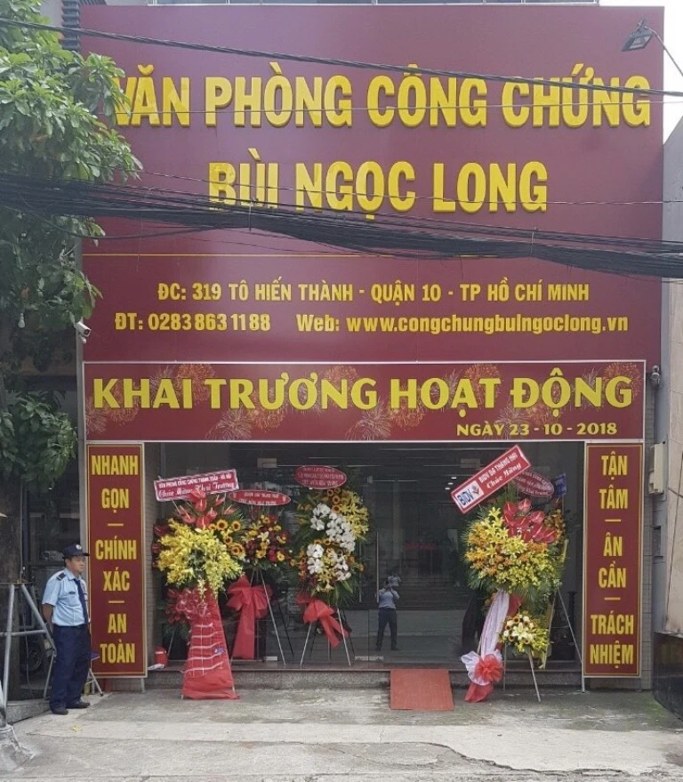 Ngày 23-10, VPCC Bùi Ngọc Long đã tổ chức khai trương hoạt động tại trụ sở 319 Tô Hiến Thành. Với vị trí trung tâm quận 10, giao thông đi lại hai chiều rất thuận tiện, có chỗ đậu ô tô, xe máy rộng rãi và mặt bằng làm việc gần 1.000 m2 được đầu tư cơ sở vật chất hiện đại và chuyên nghiệp, VPCC Bùi Ngọc Long sẽ là một địa điểm công chứng thuận lợi cho người dân, doanh nghiệp trên địa bàn TP.HCM nói chung và quận 10 nói riêng.