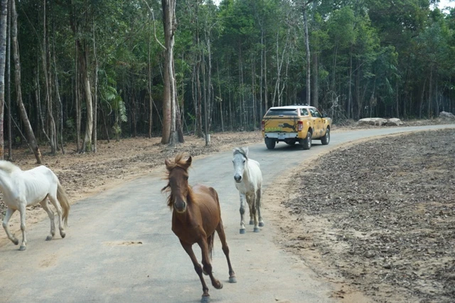 Du khách được ngồi trên ô tô để tận mắt chứng kiến những con thú quý hiếm đến từ châu Phi. Ảnh: N.NGA